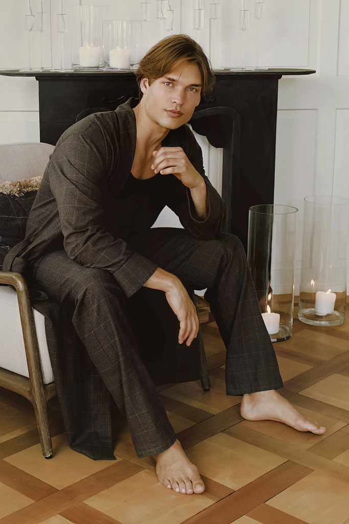 Эксклюзивный мужской халат с рисунком в стильную коричневую клетку.