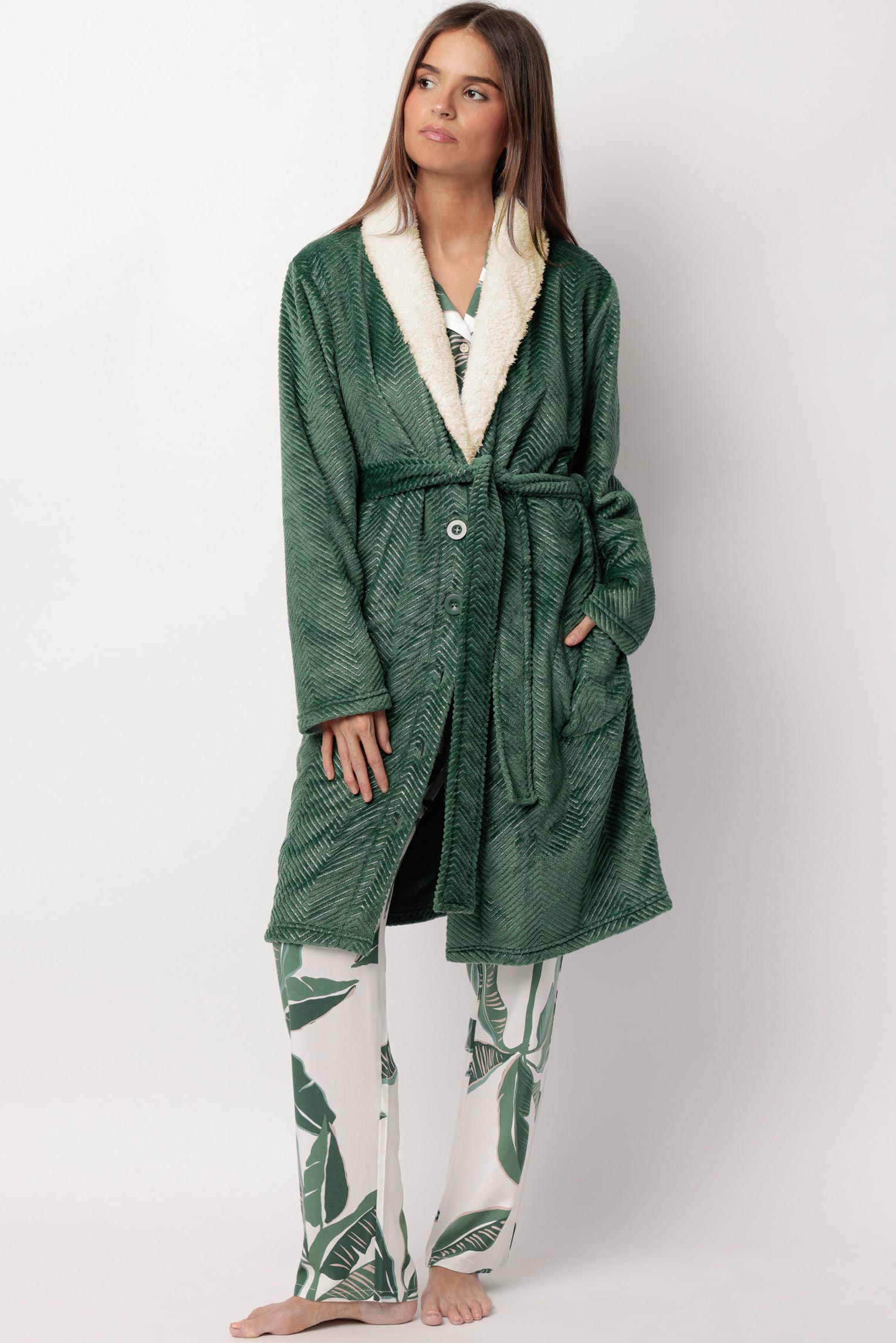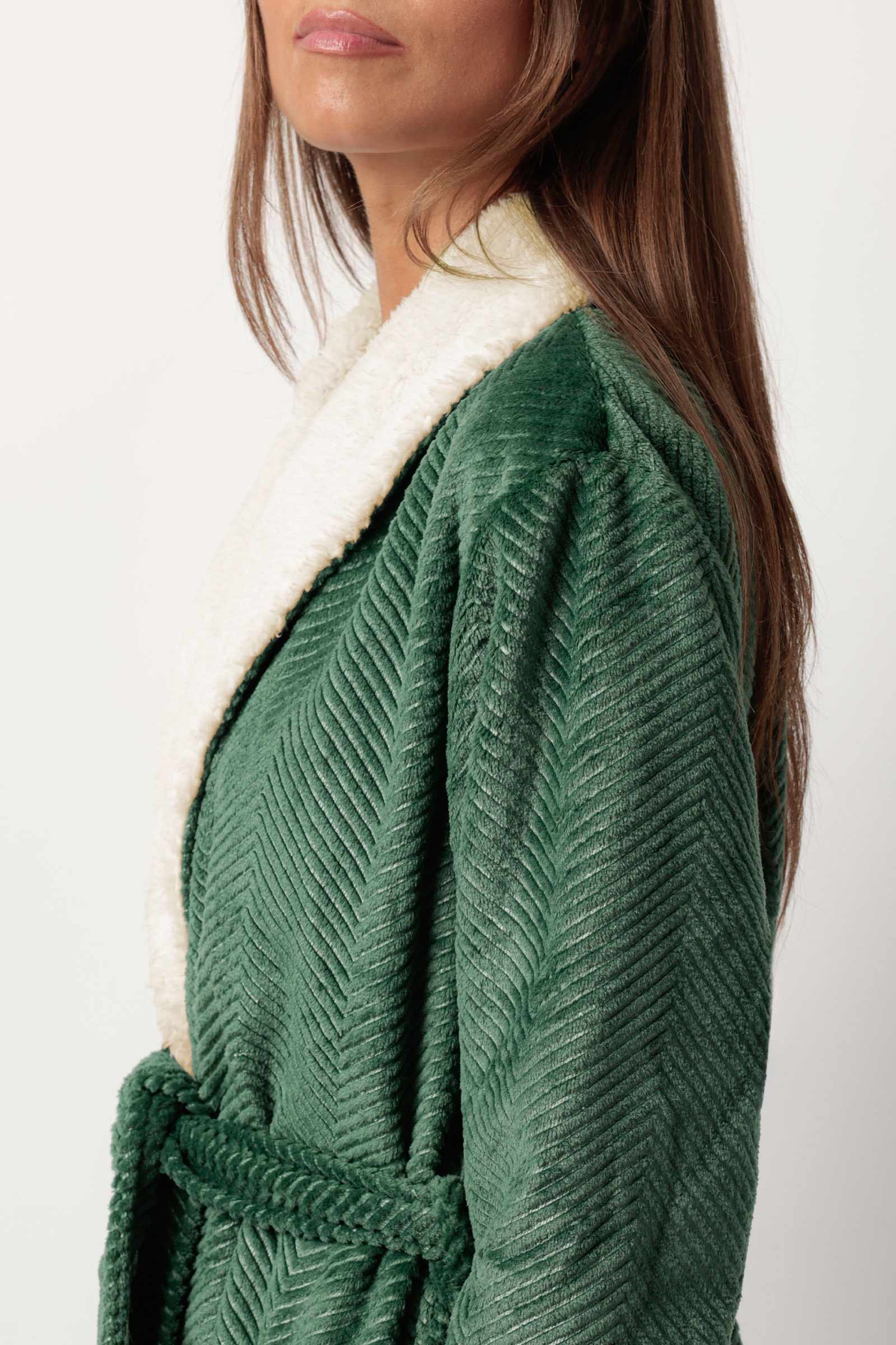 Теплый халат из очень мягкой фактурной ткани с жаккардовым плетением.