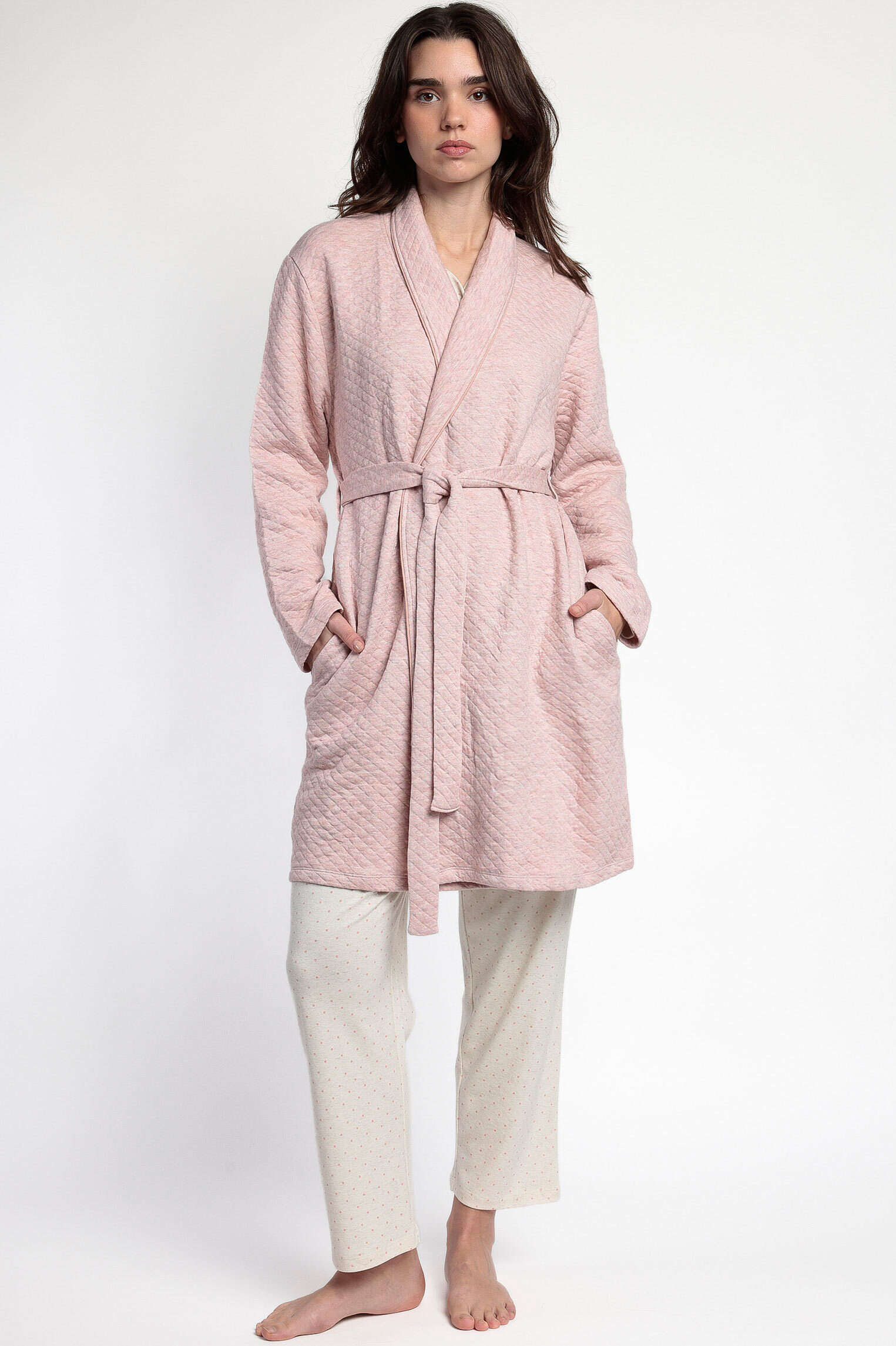 Женский халат из мягкого стеганого трикотажа, легкого и воздушного.