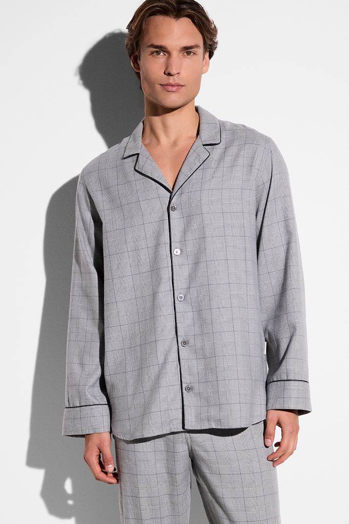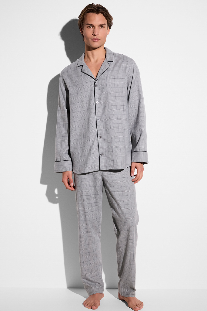 Элитная мужская пижама с рисунком в стильную клетку, которая идеально сочетается с фланелью.