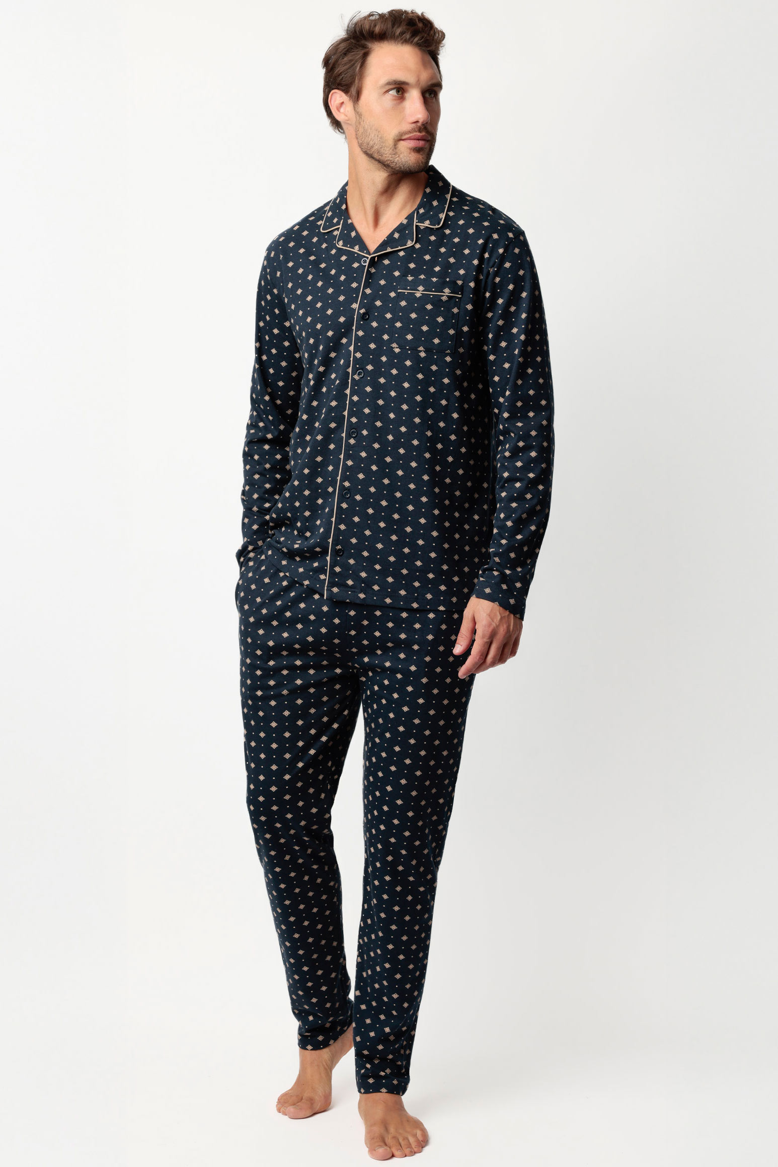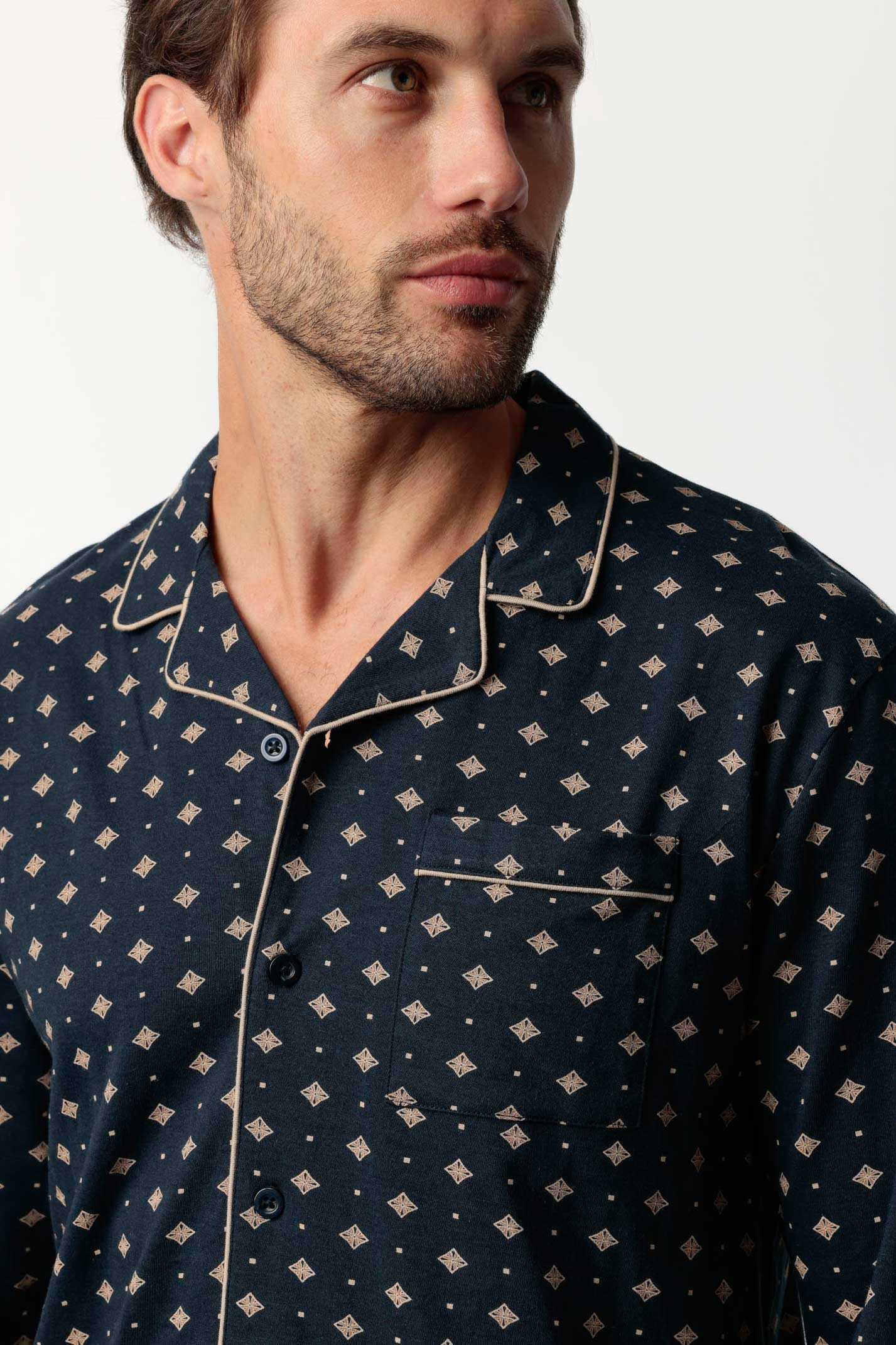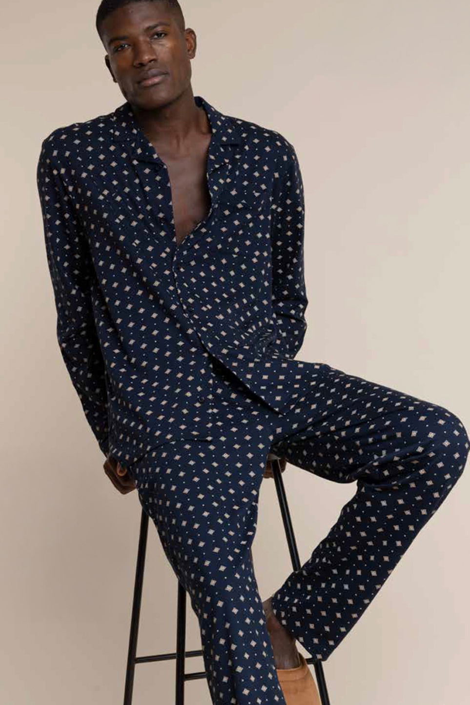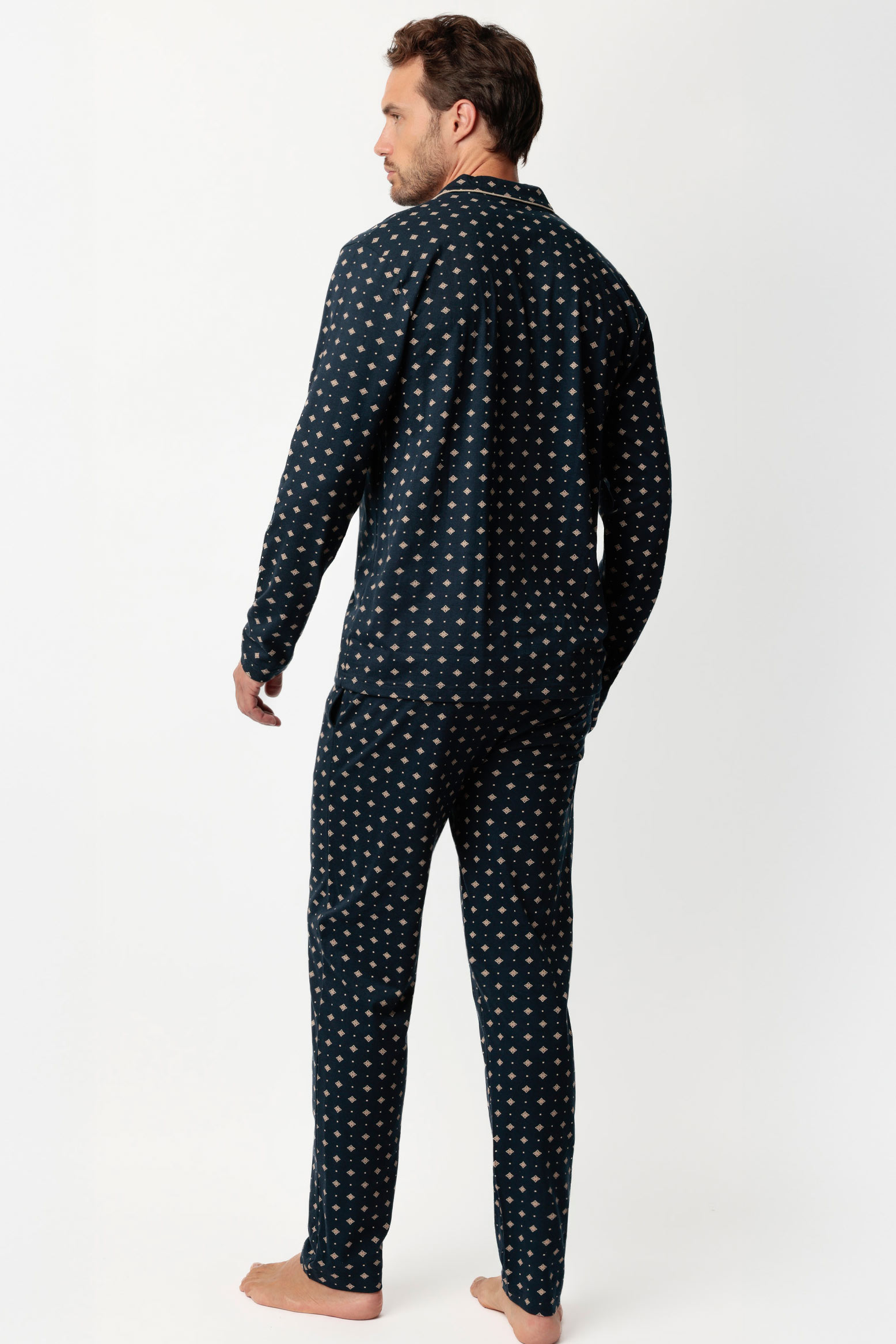 Мужская пижама темно-синего цвета со стильным принтом - ромбы.