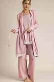 Женский домашний комплект: халат, лонгслив и брюки.