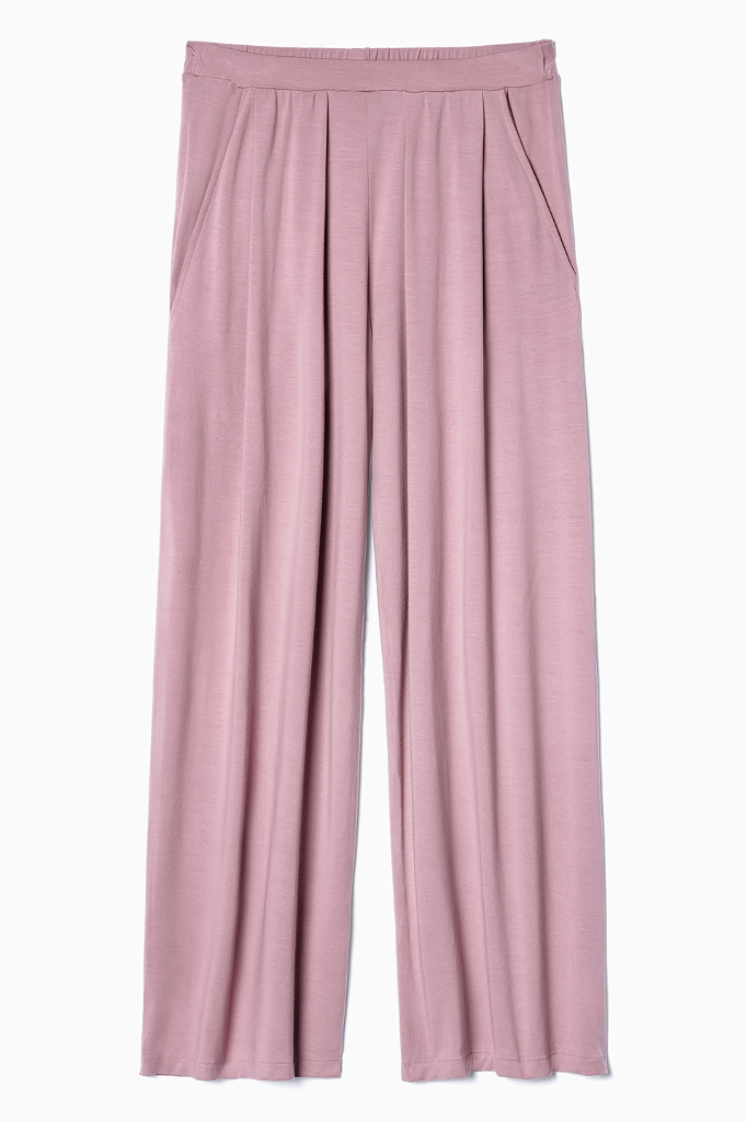 Широкие свободные брюки выполнены со стильными складками.